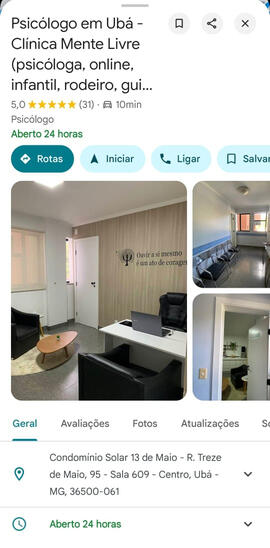 Agora, com a realização de um grande sonho, nasce a Clínica Mente Livre, um espaço pensado para acolher, cuidar e transformar vidas.Localizada em Ubá (MG) e com atendimentos disponíveis para todo o Brasil de forma online, a Clínica Mente Livre oferece um acompanhamento psicológico acessível, humanizado e de alta qualidade, para quem busca autoconhecimento, equilíbrio e saúde mental.Aqui, seu processo de mudança começa com escuta, acolhimento e profissionalismo. Dê o primeiro passo para uma Mente Livre!
